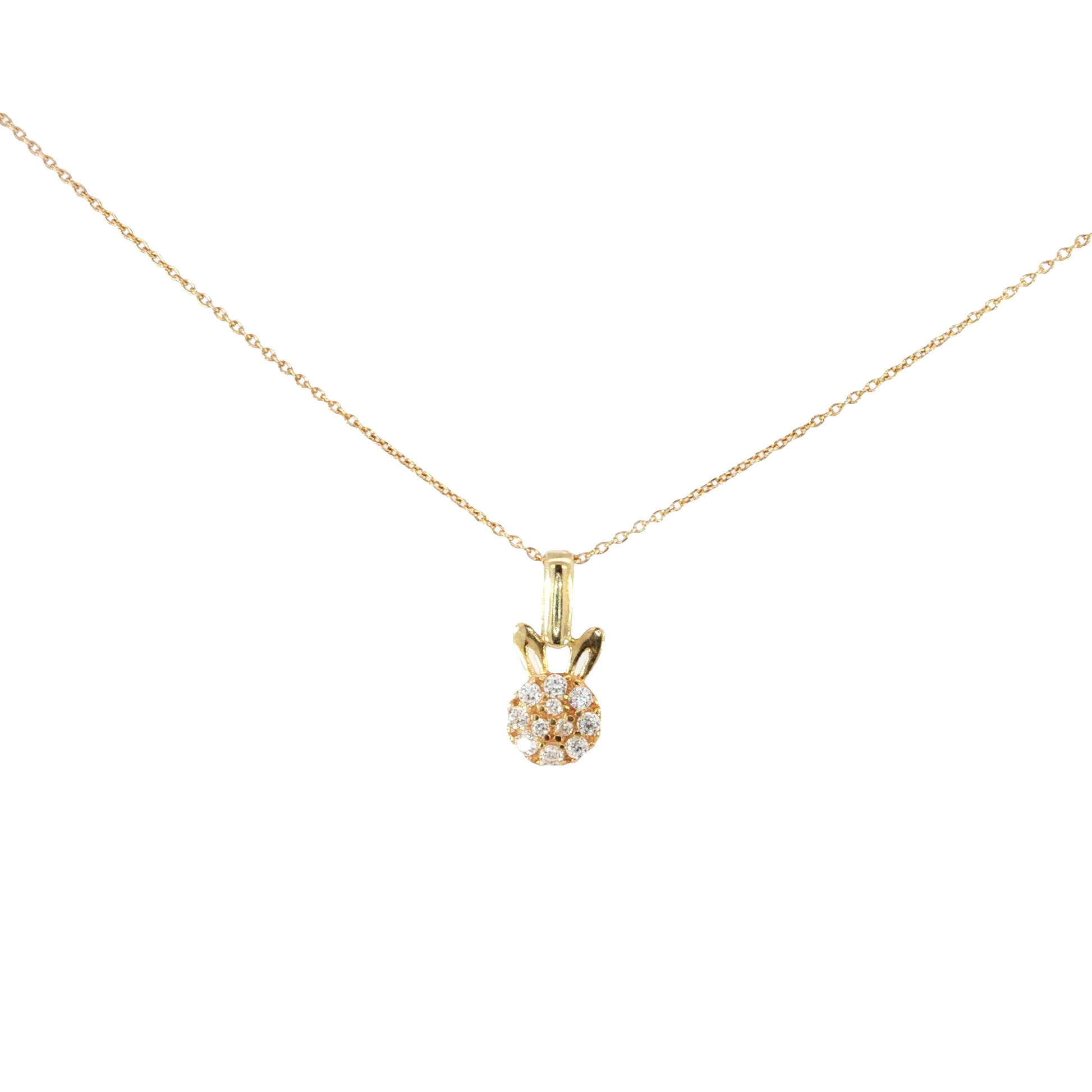 Make a delightful statement with this enchanting 18k yellow gold bunny charm necklace. The adorable pendant features a lustrous cluster of cubic zirconia stones that sparkle with every movement, creating an irresistible focal point. Suspended vertically for maximum visual impact, this piece brings together playful charm and refined luxury in perfect harmony. The fine yellow gold craftsmanship ensures durability while maintaining its radiant beauty. Ideal for those who appreciate distinctive jewelry that celebrates individuality, this necklace effortlessly elevates both casual and formal looks. Discover the perfect balance of whimsy and sophistication that makes this charm necklace an unforgettable addition to your collection.