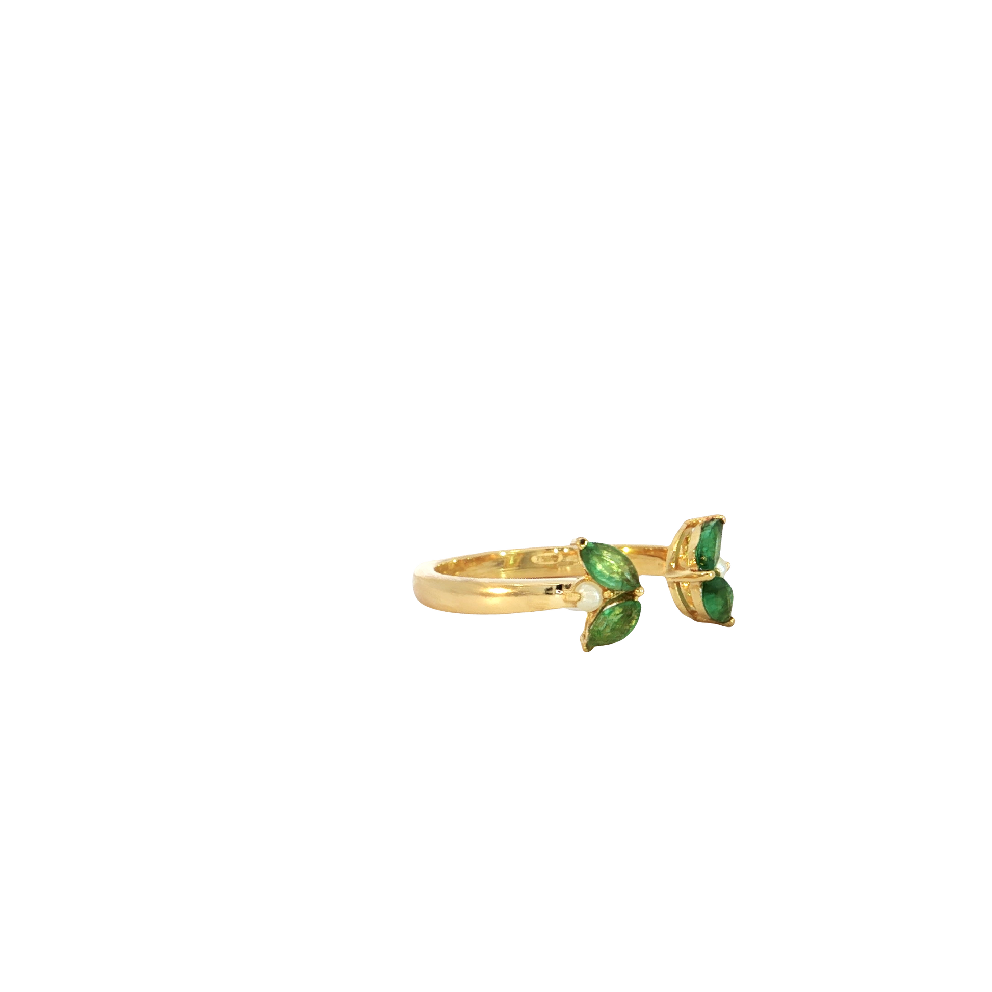 Toleen - Finger tip Ring Emerald and Bahraini Pearls